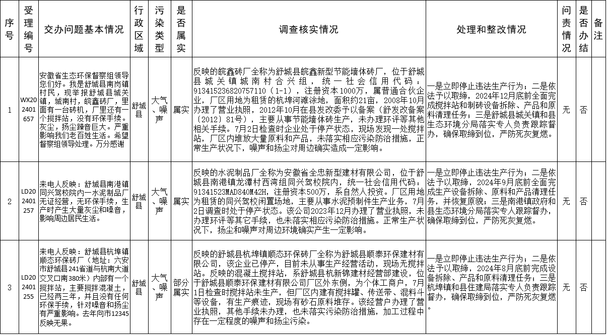 六安市關于安徽省第二生態環境保護督察組第二十九批交辦信訪件查處情況的公示