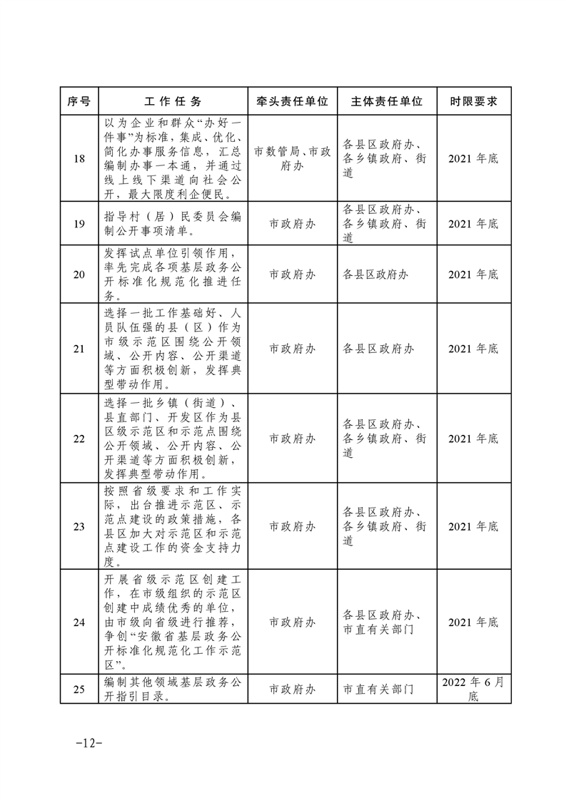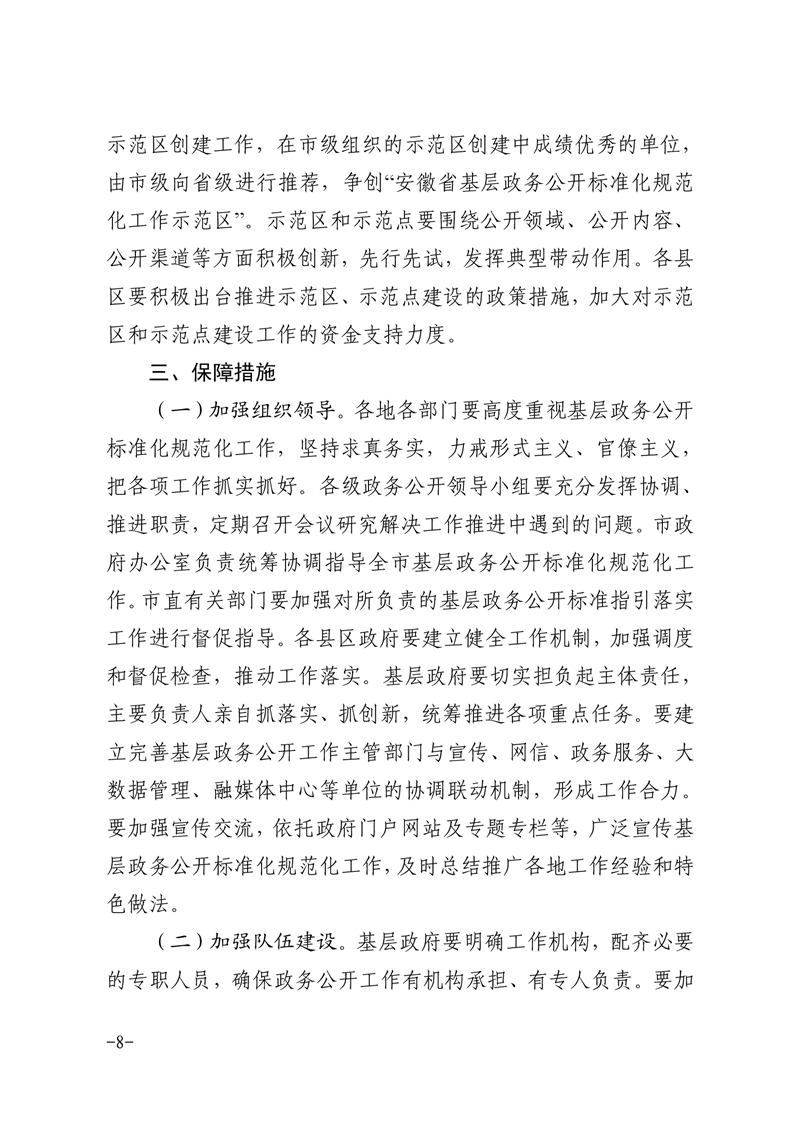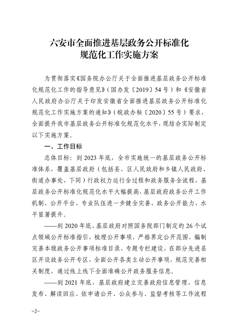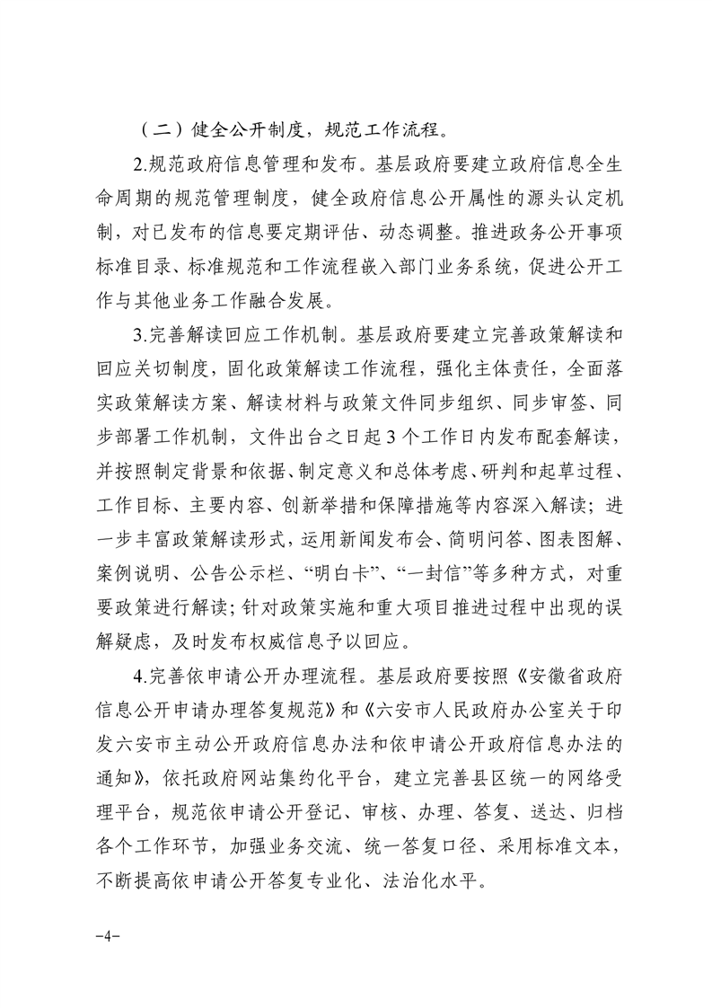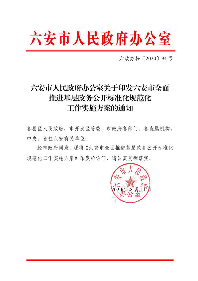 六安市人民政府辦公室關于印發六安市全面推進基層政務公開標準化規范化工作實施方案的通知