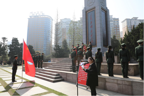 “作為新時代的青少年,我們定當賡續紅色血脈,繼承革命先輩頑強拼搏、艱苦奮斗的精神,高舉隊旗永遠跟黨走。”學生代表鏗鏘有力的發言表達了他們傳承紅色基因,沿著先輩足跡接續前行、報效祖國的遠大志向。隨后,學校黨員代表在革命烈士紀念碑前展黨旗、重溫入黨誓詞,追憶入黨初心。