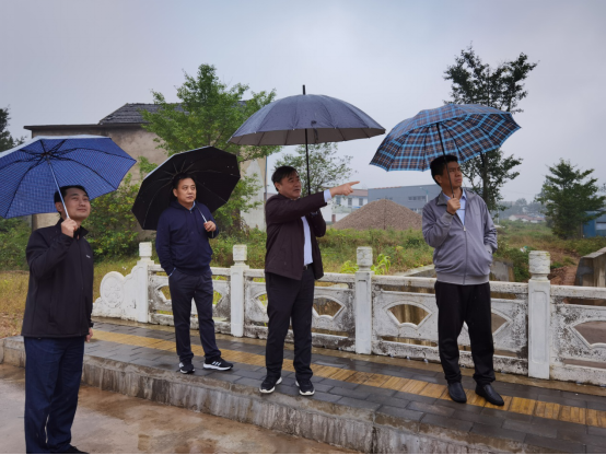 下午,陸純一行冒雨走訪了幫扶貧困戶,考察了村莊建設、景區入口處、農家樂。