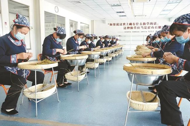 工人們正在用傳統(tǒng)手法炮制霍山石斛楓斗。(資料圖片)
