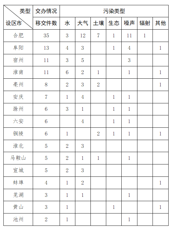 中央第二生態(tài)環(huán)境保護督察組轉(zhuǎn)辦群眾來信來電舉報統(tǒng)計表